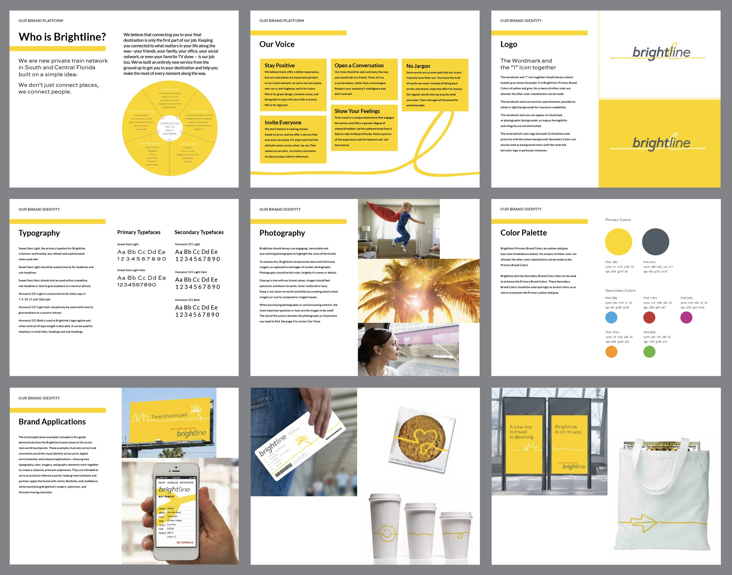 We worked tirelessly to develop a comprehensive brand book and guidelines to ensure that Brightline's internal departments and outside vendors could apply the design seamlessly across all applications and grow with it – and they have done so beautifully!